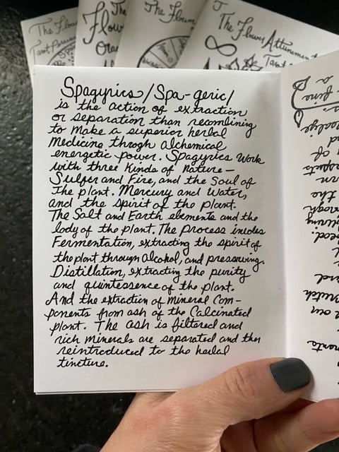 Is a blend of cartomancy (the use of using playing cards for divination) with tarot archetypes based on numerology. This zine offers a step-by-step process to determine yearly and monthly themes providing opportunities to connect with each season and nature, invoking a variety of botanical allies providing support through each season.